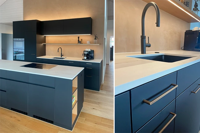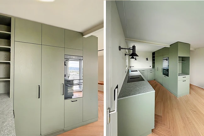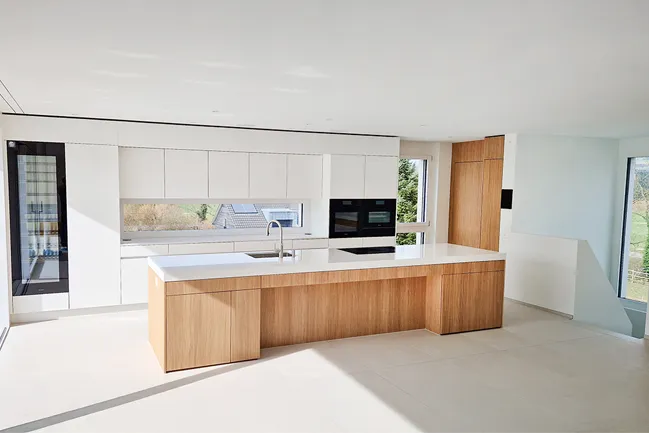 Ein besonderer Schwerpunkt lag auf massgefertigten Küchenlösungen. Von funktionalen Küchenschränken mit durchdachtem Stauraum bis hin zu individuellen Details, die den Alltag erleichtern, entstanden Küchen, die nicht nur praktisch, sondern auch optisch überzeugend sind.