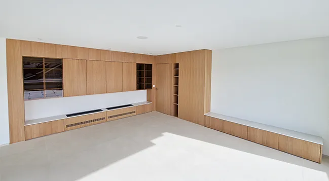 Im Wohnzimmer standen Einbauten wie Schränke, Regale und Möbelstücke im Mittelpunkt. Sie fügen sich harmonisch in den Raum ein und schaffen gleichzeitig praktischen Stauraum, ohne den Charakter des Wohnraums zu verändern.